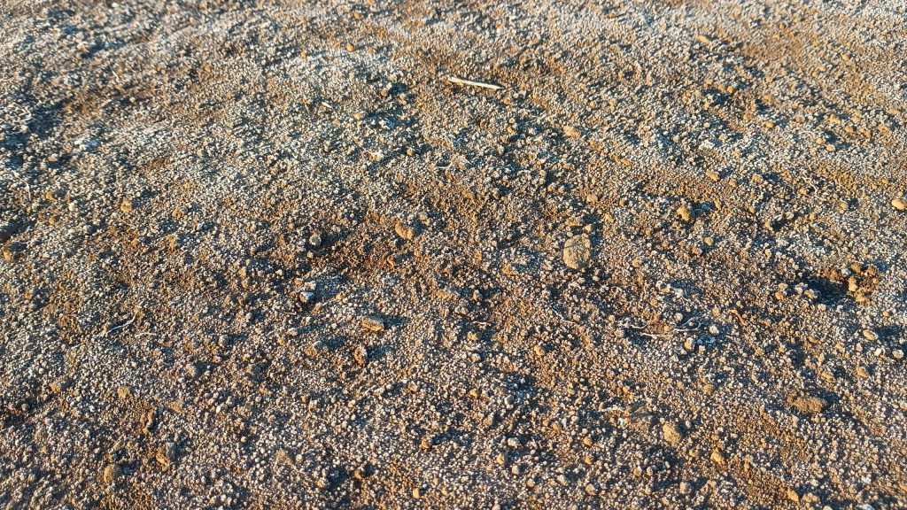 畑も霜が降りています。